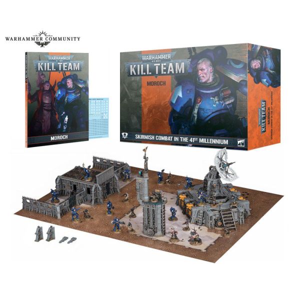 1x 96 page Kill Team: Moroch Rules manual: take the fight to the corrupted world of Moroch, a key defensive point in the Nachmund Gauntlet, with background material for this stronghold world and the forces that clash over it. This manual also includes new rules, datacards, and background tables for the Phobo Strike Team and Blooded kill teams, as well as additional killzone rules and Shadow Operations missions set on this war-torn planet.