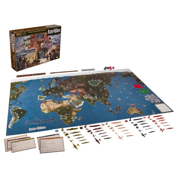 This strategy World War II board game is set in 1942, the historical high-water mark of Axis expansion. Controlling one of the Axis or Allied powers, you will command both your country’s military forces and its wartime economy, with the chance to plan attacks, marshal forces into embattled territories, and resolve conflicts. Victory will go to the side that conquers its opponents on the field of battle and liberates or occupies the greatest cities of the world. This second edition of the Avalon Hill Axis & Allies 1942 board game features an Antiaircraft Artillery combat unit and sculpts including UK artillery, submarine and destroyer units, German artillery, and a Russian submarine. The large gameboard measures 40" x 26".