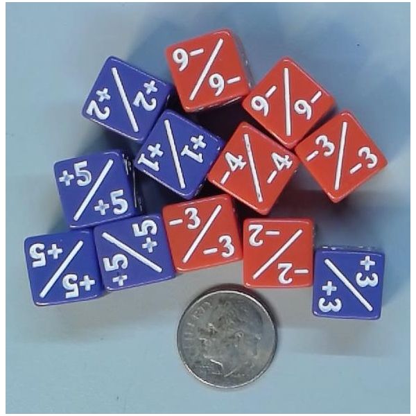 Counter Dice 12mm D6: Six Positive Green Opaque, Six Negative Red Opaque (12)