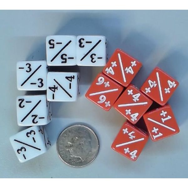Counter Dice 12mm D6: Six Positive Red Opaque, Six Negative White Opaque (12)