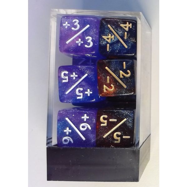 Counter Dice: Negative/Positive D6 Purple/Blue Glitter & Red/Blue Glitter (12)