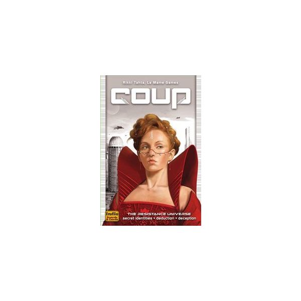 In Coup, you want to be the last player with influence in the game, with influence being represented by face-down character cards in your playing area.Each player starts the game with two coins and two influence – i.e., two face-down character cards; the fifteen card deck consists of three copies of five different characters, each with a unique set of powers:Duke: Take three coins from the treasury. Block someone from taking foreign aid.Assassin: Pay three coins and try to assassinate another player's character.Contessa: Block an assassination attempt against yourself.Captain: Take two coins from another player, or block someone from stealing coins from you.Ambassador: Draw two character cards from the Court (the deck), choose which (if any) to exchange with your face-down characters, then return two. Block someone from stealing coins from you.On your turn, you can take any of the actions listed above, regardless of which characters you actually have in front of you, or you can take one of three other actions:Income: Take one coin from the treasury.Foreign aid: Take two coins from the treasury.Coup: Pay seven coins and launch a coup against an opponent, forcing that player to lose an influence. (If you have ten coins or more, you must take this action.)When you take one of the character actions – whether actively on your turn, or defensively in response to someone else's action – that character's action automatically succeeds unless an opponent challenges you. In this case, if you can't (or don't) reveal the appropriate character, you lose an influence, turning one of your characters face-up. Face-up characters cannot be used, and if both of your characters are face-up, you're out of the game.If you do have the character in question and choose to reveal it, the opponent loses an influence, then you shuffle that character into the deck and draw a new one, perhaps getting the same character again and perhaps not.The last player to still have influence – that is, a face-down character – wins the game!