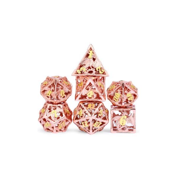 Hollow Metal Copper Dragons W/Gold Dice Polyhedral Set (7)