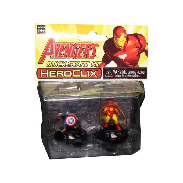 The Avengers Quick-Start kit makes it easy to learn HeroClix. Featuring Captain America and Iron Man, a rules sheet, and map