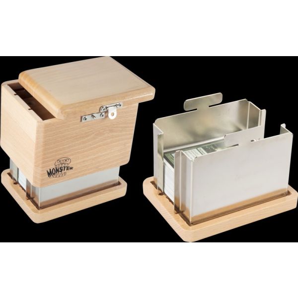 The new Misdirection deck box features next level anti theft protection Crafted out of quality beechwood and zinc plated metal, this one of a kind deck box holds 100+ cards and is made to protect your cards from anything