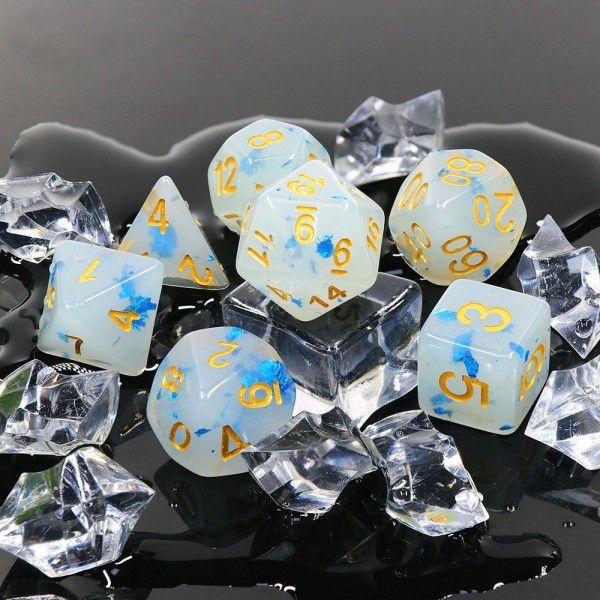 Paddy Jelly White/Blue with Gold Polyhedral 7 Dice Set