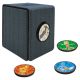 Officially licensed Pokémon Deck Box with changeable magnetic badges. Comes with four 1.5 in. magnetic badges. Holds 100+ standard size cards double-sleeved in Ultra PRO Deck Protector sleeves . Strong magnetic closure featuring multiple magnets to hold the lid securely shut. Lid unfolds to reveal dual thumb notches for easy access to your deck.