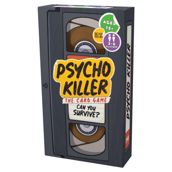 Finally, CRIME meets PARTY! In the base game Psycho Killer, players use cards that have cliché horror tropes to try to evade the Psycho Killer - when he shows up, you show your hand to see how much damage you will take. The player with the most health after he shows up three times, wins. Ages 21+ 2-4 Players