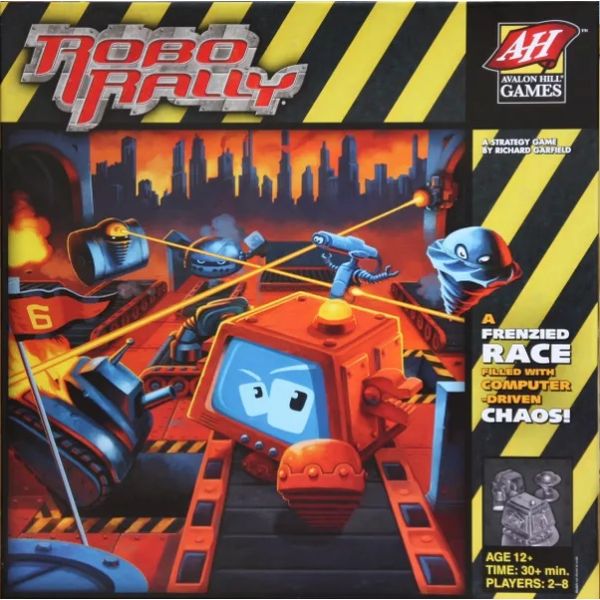 PRE-OWNED:The robots of the RoboRally automobile factory spend their weekdays toiling at the assembly line. They put in hard hours building high-speed supercars they never get to see in action. But on Saturday nights, the factory becomes a world of mad machines and dangerous schemes as these robots engage in their own epic race.It takes speed, wits, and dirty tricks to become a racing legend! Each player chooses a robot and directs its moves by playing cards. Chaos ensues as all players reveal the cards they've chosen. Players face obstacles like industrial lasers, gaping pits, and moving conveyor belts -- but those can also be used to their advantage! Each player aims to make it to each of the checkpoints in numerical order. The first player to reach all of the checkpoints wins.