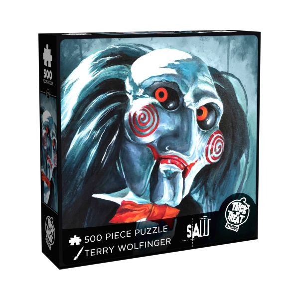 From Trick or Treat Studios. This amazing 500 piece jigsaw puzzle inspired by Saw features an illustration by master artist Terry Wolfinger.
