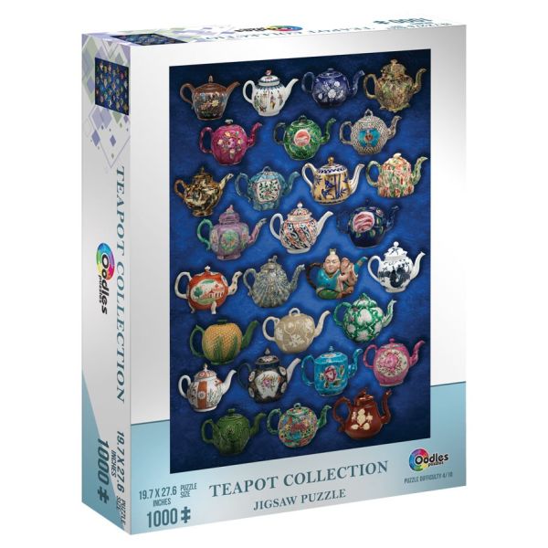 Explore a world full of color and intricate form in this 1,000-piece puzzle created to highlight the charm, allure and history of teapots from various nations. These high quality images were carefully selected to provide a variety of elaborate, imaginative styles and functionality evident in these handcrafted wonders. Teapot Collection was conceived by in-house designer Jason Haynes and is guaranteed to provide a satisfying and relaxing puzzle experience.