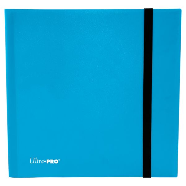 12-pocket Sky Blue PRO-Binder with embossed middle black web material gives cards a classic framed look. Side loading pocket design to prevent cards from easily falling out. Elastic strap holds the binder shut when not in use. All materials made from archival-safe, acid-free non-PVC material. Holds 480 cards in Ultra Pro Deck Protector sleeves.