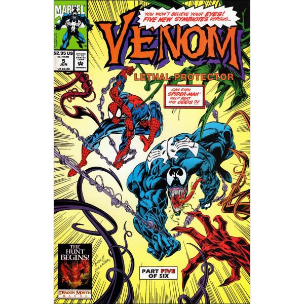 When Venom spawns five new killer symbiotes, Spider-Man teams up with him to blast them! Written by David Michelinie. Art by Ron Lim and Sam de la Rosa. Cover by Mark Bagley and Sam de la Rosa.