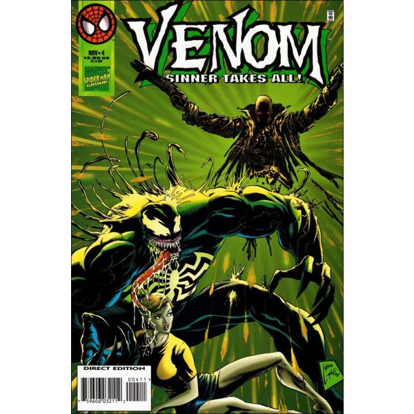 The new Sin-Eater makes Hannibal Lecter look like a little lamb--but now it's Venom's turn to feast! And what effect will Eddie's symbiote miracle-cure have on his ex-wife? Written by Larry Hama. Art by Greg Luzniak, Keith Aiken and Jeff Albrecht. Plus: bonus back-up story featuring the Jury. Cover by Steve Lightle. 48 pages.