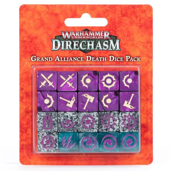 Attack Dice: metallic purple with two tone swirl, and bone coloured pips