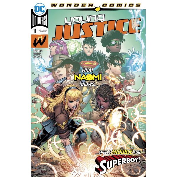 Young Justice returns! Home! To Earth! Finally! Just in time to confront all of their big issues-like S.T.A.R. Labs! Moms and dads! Naomi! Jinny Hex's trunk! And yes, each other! This starts the wild wind-up to Wonder Comics' first year as the truth behind S.T.A.R. Labs and the reunion of Young Justice is revealed!